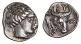 EUBOIA, Histiaia, (mid 4th century B.C.), silver tetrobol, (2.49 g), obv. nymph Histiaia head to right wreathed with vine leaves, hair rolled, rev. nymph Histiaia ...
