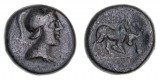 ANCIENT GREEK AE ISSUES, Caria, Tabae, AE15 (4.79g), obv. head of young warrior in crested helmet right, spear over shoulder, rev. humped bull butting right, ...