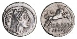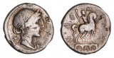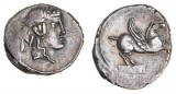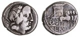 MAN. AEMILIUS LEPIDUS, (114-113 B.C.), silver denarius (3.50g), Rome Mint, obv. laureate and diademed head of Roma to right, ROMA before, XVI monogram behind, rev. ...