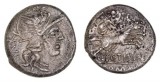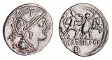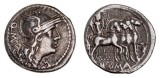 C. SERVILIUS M.F., (136 BC), silver denarius (3.81g), obv. helmeted head of Roma facing right, wreath and mark of value to left, [ROMA] below, rev. ...