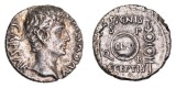 AUGUSTUS, (27 B.C. - A.D. 14), silver denarius, Lyons Mint, issued 15-13 B.C. (3.84 g), obv. bare head of Augustus to right, around AVGVSTVS DIVI ...