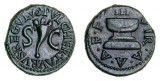 AUGUSTUS, (27 BC - 14 AD), copper as (11.43g), Rome mint, moneyer's series, issued 15 BC, obv. bare haed right, CAESAR AVGVSTVS TRIBVNIC POTEST, rev. ...