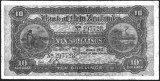 BANK OF AUSTRALASIA, 3rd issue, ten shillings Wellington 2nd June 1931 (P.S131). With hand stamp, Bank of New Zealand, Dunedin, dirty edges, otherwise nearly fine.