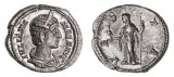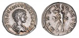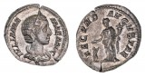 JULIA MAMAEA, (A.D. 222-35), silver denarius (3.70g), Rome mint, issued A.D. 225-35, obv. diademed bust right, IVLIA MAMAEA AVG, rev. Vesta, veiled, standing left, holding ...
