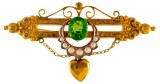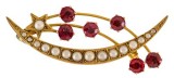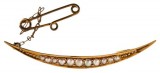 BROOCH, in gold (9ct; 3.88g; 60x32mm), attributed to maker, Thompson & Graham, features a multi decorated double bar with an imitation seven pearl decorated crescent ...