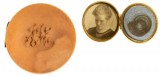 BROOCH, in gold (9ct; 6.50g; 43.5mm), attributed to Willis & Sons, features a gold circle with a glass cover but missing photograph, around the circle ...
