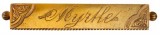 BROOCH, in gold (15ct; 3.47g; 46x7mm), by Pratt, features an engraved decorated bar and in the centre is inscribed, "N.B", with unofficial box. Hairlines, otherwise ...