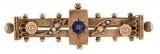 BROOCH, in gold (9ct; 5.26g; 51x16mm), attributed to S.Schlank, features two heavily decorated bars featuring six seed pearls and in the centre is a rectangular ...
