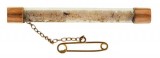 BROOCH, being a capsule with gold ends (9ct; tot wt 4.15g; 45x6mm), by Wendts, features a clear capsule of opal chips, pin-back with safety chain. ...