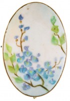 BROOCH, in hand painted porcelain in a gold frame (9ct; tot wt 4.44g; 22.5x29.5mm), attributed to Joseph Lawrence Pty Ltd, features a floral display, pin-back ...