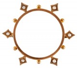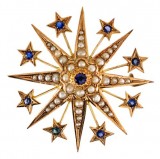 BROOCH, c1900, in gold (9ct; 12.56g; 42x43mm), attributed to Larard Brothers, features a star design decorated with natural seed pearls and in the centre is ...
