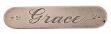 BAR BROOCH, in sterling silver (5.49g; 48x10.5mm), by Perryman, features a plain bar inscribed with the name, "Grace", pin-back. Hairlines, otherwise very fine.