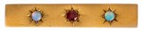BAR BROOCH, in gold (9ct; 2.57g; 40x7mm), by F.H.Wagner, features a plain bar with three engraved stars and these filled with two crystal opals at ...