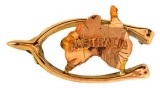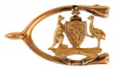 AUSTRALIA WISHBONE BROOCH, in gold (9ct; 2.53g; 35x21mm), attributed to maker, Willis & Sons, features a wishbone with the coat-of-arms of Australia inside, pin-back. Extremely ...