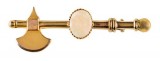AXE BROOCH, in gold (9ct; 2.37g; 47x16mm), attributed to maker, Willis & Sons, features a bar in the shape of an axe head and handle ...