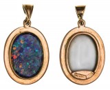 OPAL PENDANT, in gold (9ct; 3.35g; 17x24mm), by Wendt, features an oval opal doublet, with stylized suspender. Good very fine.