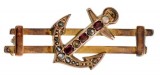 ANCHOR BROOCH, in gold and silver (gold tested as 15ct; tot wt 6.27g; 45x19mm), marked A.E.Morley and crown and lion but attributed to maker, Schlank ...