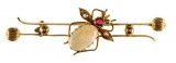 BEETLE BROOCH, in gold (15ct; 3.96g; 55x15.5mm), attributed to maker, Willis & Sons, features a decorated double bar with a beetle in the centre, the ...