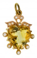 CITRINE PENDANT, in gold frame (15ct; tot wt 3.65g; 18x22mm), by (Henry) Newman, features a heart shaped citrine claw set in a gold frame decorated ...