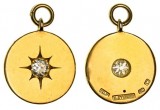DIAMOND PENDANT, c1880, in gold (18ct; 16.50g; 25mm), by H.(enry) Steiner, features a plain gold circular pendant with an engraved star in the centre and ...