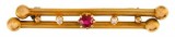 RUBY AND DIAMOND BAR BROOCH, in gold (9ct; tot wt 3.08g; 49x11.5mm), attributed to maker, Duggin, Shappere & Co, featuring a decorated double bar with ...