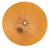 DIAMOND BROOCH, in gold (9ct; 12.48g; 43mm), attributed to maker, Aronson & Co, features a plain domed brooch with a small diamond in the centre, ...