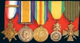 GROUP OF FIVE: 1914-15 Star; British War Medal 1914-18; Victory medal 1914-19; Medaille Militaire; Croix de Guerre. 28384 Dvr D.Ward R.F.A. on first medal, 28384 ...