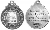 FEDERATED SOCIETY OF BOILERMAKERS AND IRON SHIPBUILDERS OF AUSTRALIA. (S335) 32mm x 27mm reverse inscribed Presented to Bro. W. Blakeley by the Mortlake Boilermakers as ...