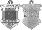 DUNLOP CUP 1937 WARRNAMBOOL - MELBOURNE L.V.W. Inscribed on reverse F. Handely 9.39 Made by D.S.J.Co. Dark blue white & red enamel; MELBOURNE - ...
