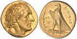EGYPT, Kingdom of, Ptolemy II, (283-246 B.C.), gold pentadrachm, issued 274-265 B.C., (17.772 grams), Kition (or Salamis) mint, obv. diademed head of Ptolemy I to ...