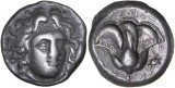 CARIAN ISLANDS, Rhodes, (360-late 340's B.C.), silver didrachm, (6.652 grams), obv. head of Helios three-quarter face to right with hair loose, rev. rose, with bud ...