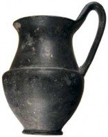 ETRUSCAN, 7th century B.C., Bucchero earthenware, olpe, inscribed below "Found at Nola (Campania) bt (bought) of Lawrence Dec. 1896, P.1403". Very fine.