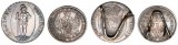 SILVER COINS FOR DISPLAY WITH NINETEENTH CENTURY MOUNT, suitable for viewing on a table or desk; Russia rouble, 1858; Switzerland, Bern thaler, 1798. Toned, good ...
