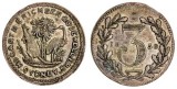 COIN ART DISH, Mexico, Charles IIII, silver eight reales 1793 FM set in a hammered silver dish with bamboo style edging. The coin with chopmarks, ...