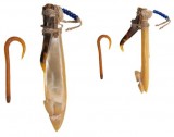 SOLOMON ISLANDS, Guadalcanal, trolling lure made with a pearlshell shank and turtleshell barb, with fibre lashings and blue glass bead hackle (6cm); small barbless hook, ...