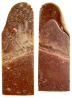CHINA, Shoushan stone seal (chop), c.1740-60, intricately carved with a village scene, Chinese characters on base, attributed to the Board of Revenue and Works. Minor ...