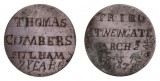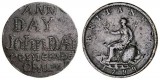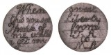 CONVICT LOVE TOKEN, on a George III halfpenny shaved smooth on both sides, stipple engraved on one side, "John/Tombs/Wheatley/July 3rd" and on the other side, ...