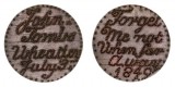 CONVICT LOVE TOKEN, stipple engraved on a 1797 cartwheel penny shaved smooth on both sides, on one side, "Mary/Garret/Love And/Liberty/1843", and on the other side, ...