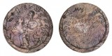 CONVICT LOVE TOKEN, engraved on a George III penny shaved smooth on both sides, on one side is stipple engraved with a half-kneeling man within ...