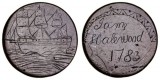 LOVE TOKEN, smoothed halfpenny, barque on water engraved on obverse, reverse engraved 'Jams Halewood 1783'. Very fine.