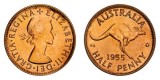 ELIZABETH II, Perth mint proof halfpenny, 1955. Full red, FDC and rare.