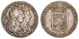 WILLIAM AND MARY, silver halfcrown, second reverse, 1689 caul and interior frosted, pearls (S.3435). Toned, nearly very fine.