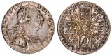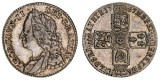 GEORGE II, old head, silver shilling, 1743 roses (S.3702). Attractively toned, nearly extremely fine.
