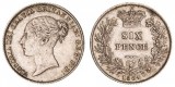 ANNE - EDWARD VII, silver florin, 1879 (S.3898); shillings, 1707E (S.3612), 1723 SSC (S.3647), 1844 (S.3904), 1907; sixpences, 1757, 1864 die no 38, 1881, 1889, ...