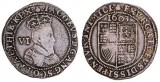 JAMES I, (1603 - 1625), first coinage, 1603, silver sixpence, first bust, mm thistle (S.2647). Pleasant cabinet tone, round flan, good fine/ nearly very fine.
