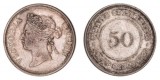 STRAITS SETTLEMENTS, Queen Victoria, silver fifty cents, 1893 (KM.13). Toned, good very fine and rare, the key date.