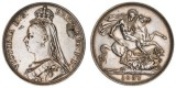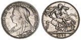 QUEEN VICTORIA - GEORGE VI, crowns, 1890, 1891, 1902, 1951 (S.3921 (2), S.3978, S.4111) (4); florin, 1908 (S.3981); shilling, 1899 (S.3940A). Very good - very ...
