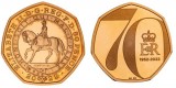 ELIZABETH II, proof fifty pence, 2022, struck in .916 fine gold, Platinum Jubilee. In case of issue, FDC and rare, certificate no. 133.