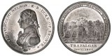 BOULTON'S BATTLE OF TRAFALGAR MEDAL, 1805, in white metal (48mm; BHM 584; Eimer 960), by Conrad H. Kuchler, Soho Mint, Handsworth, obverse, Lord Nelson wearing ...