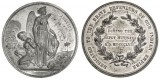 BICENTENARY OF THE REVOCATION OF THE EDICT OF NANTES, commemorated by the Huguenot churches in London, 1885, silver (47mm), obv. robed figure holding dagger and ...